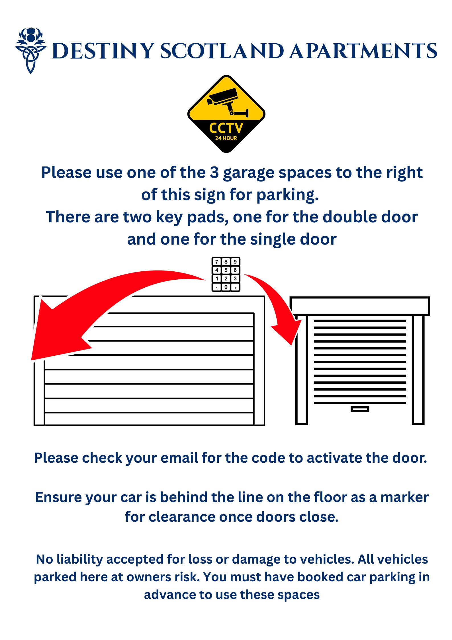 We have a 3 garage spaces available to book directly with us. A space must be booked to secure your spot!